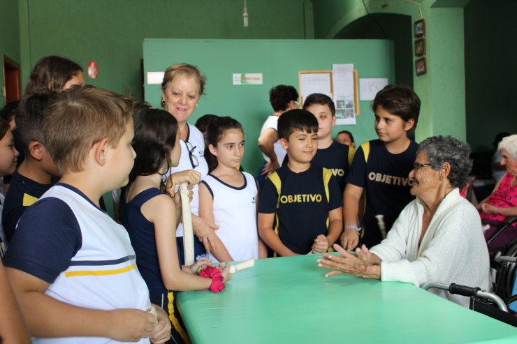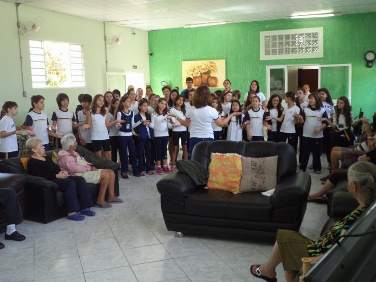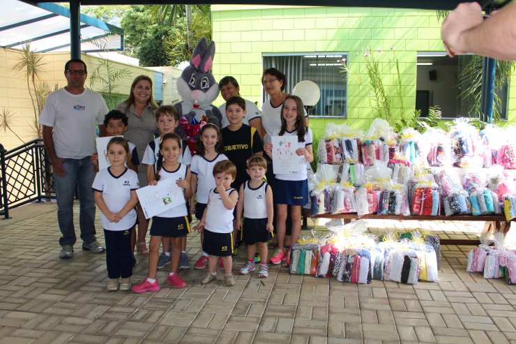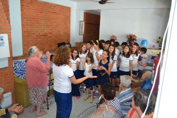 Os alunos do Berçário, da Educação Infantil e do Ensino Fundamental são convidados a participar da Páscoa Solidária fazendo a doação de livros infantis, bolachas aos idosos, brinquedos para as creches etc. As crianças dos 5ºs anos visitam instituições de idosos para cantar para eles.