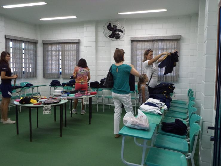A venda a preços simbólicos, de uniformes e objetos esquecidos no Colégio pelos alunos, é revertida para a compra de itens que atendam as necessidades da instituição eleita.